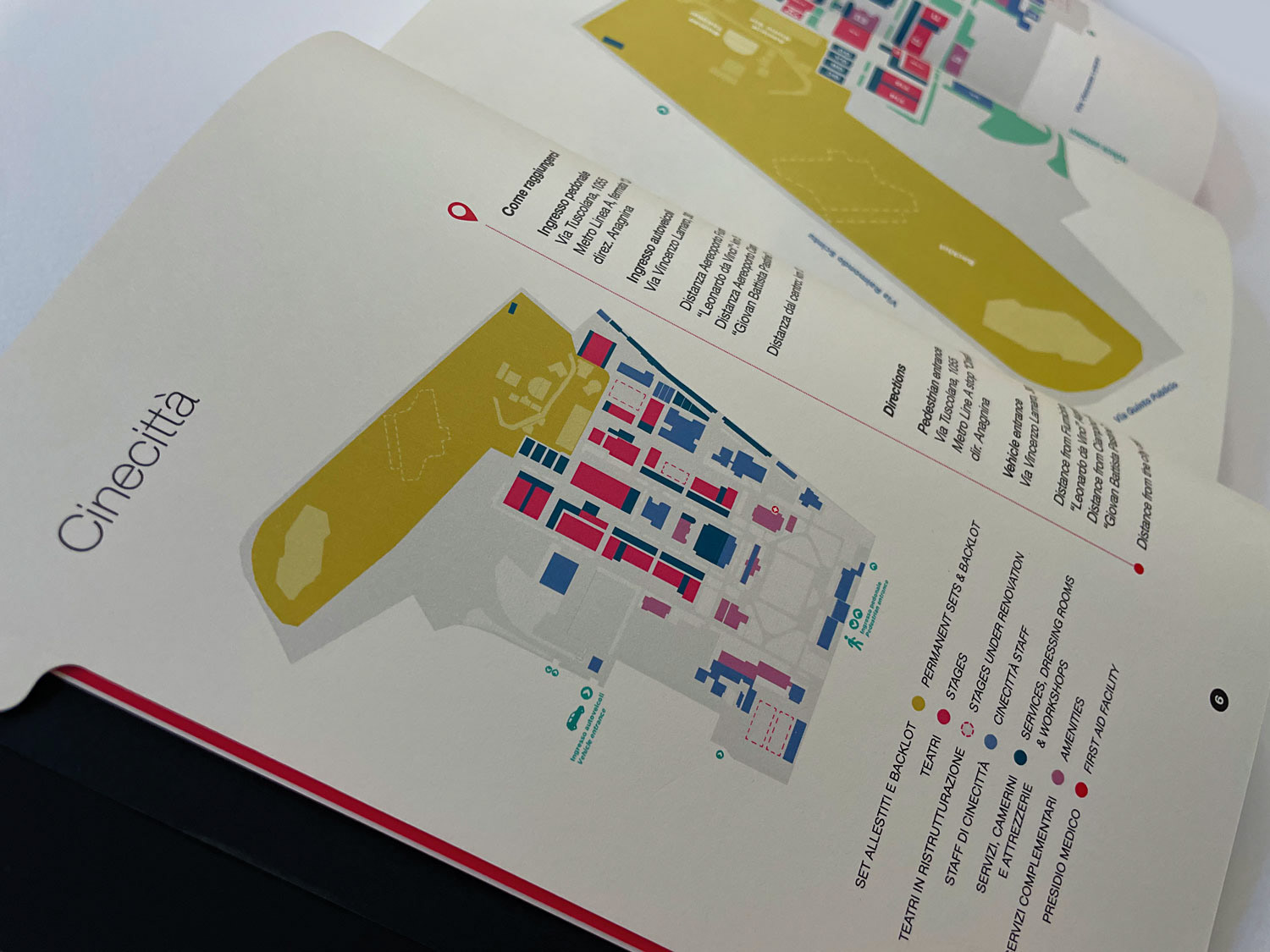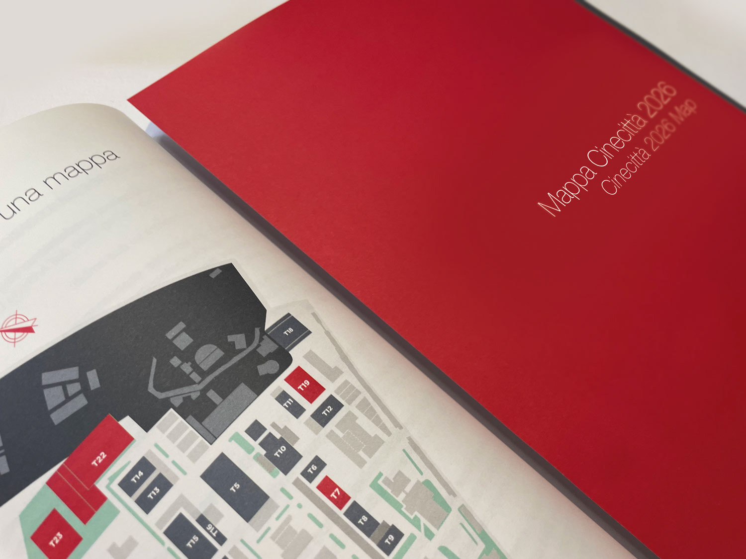 A guide to the 'City of Cinema' for all those entering Cinecittà with their productions. A brochure and a 3D video illustrating the 'Cinecittà 2026' interventions.