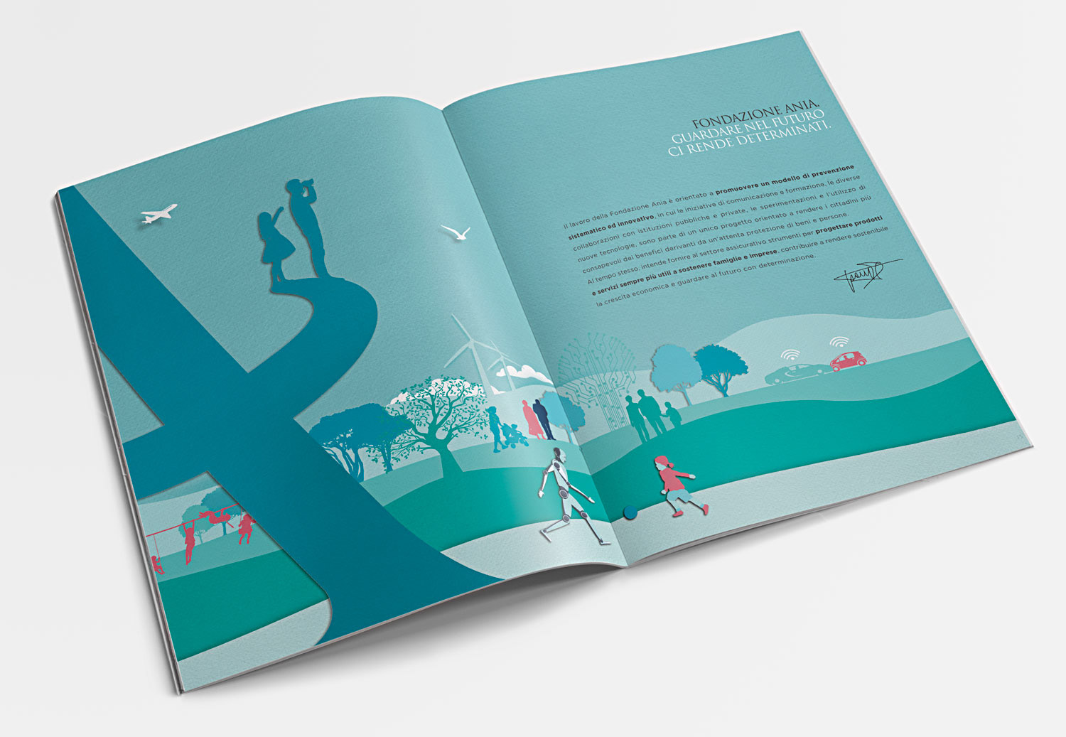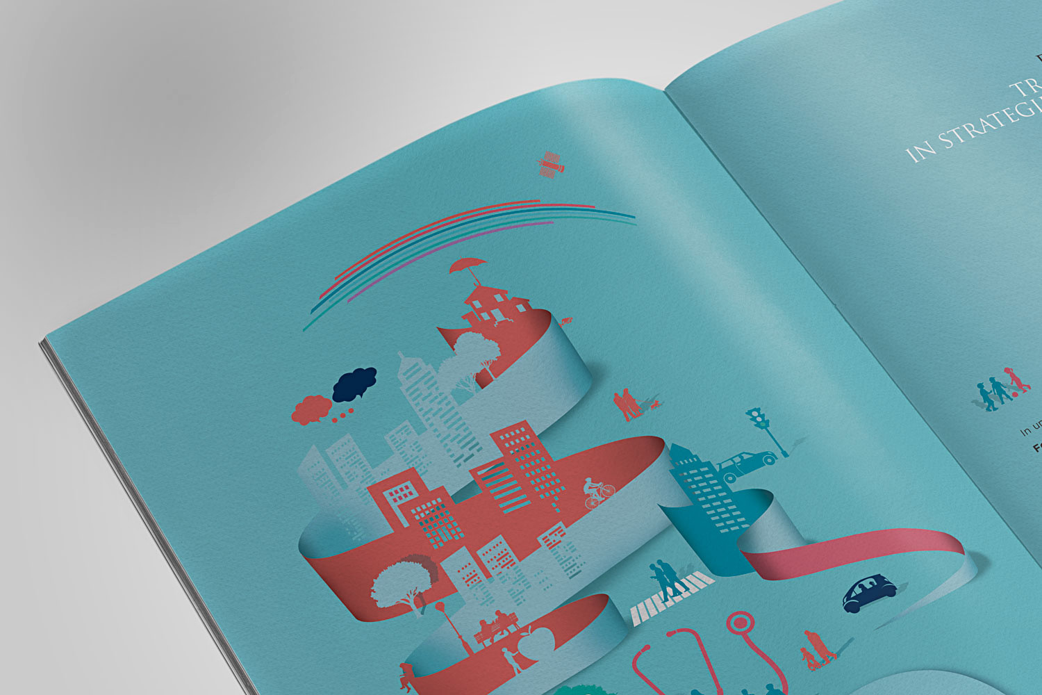 A detailed presentation of the Foundation's activities on health, safety and private pension systems. The illustrations are created in the 'paper cut' style. The project is ongoing.