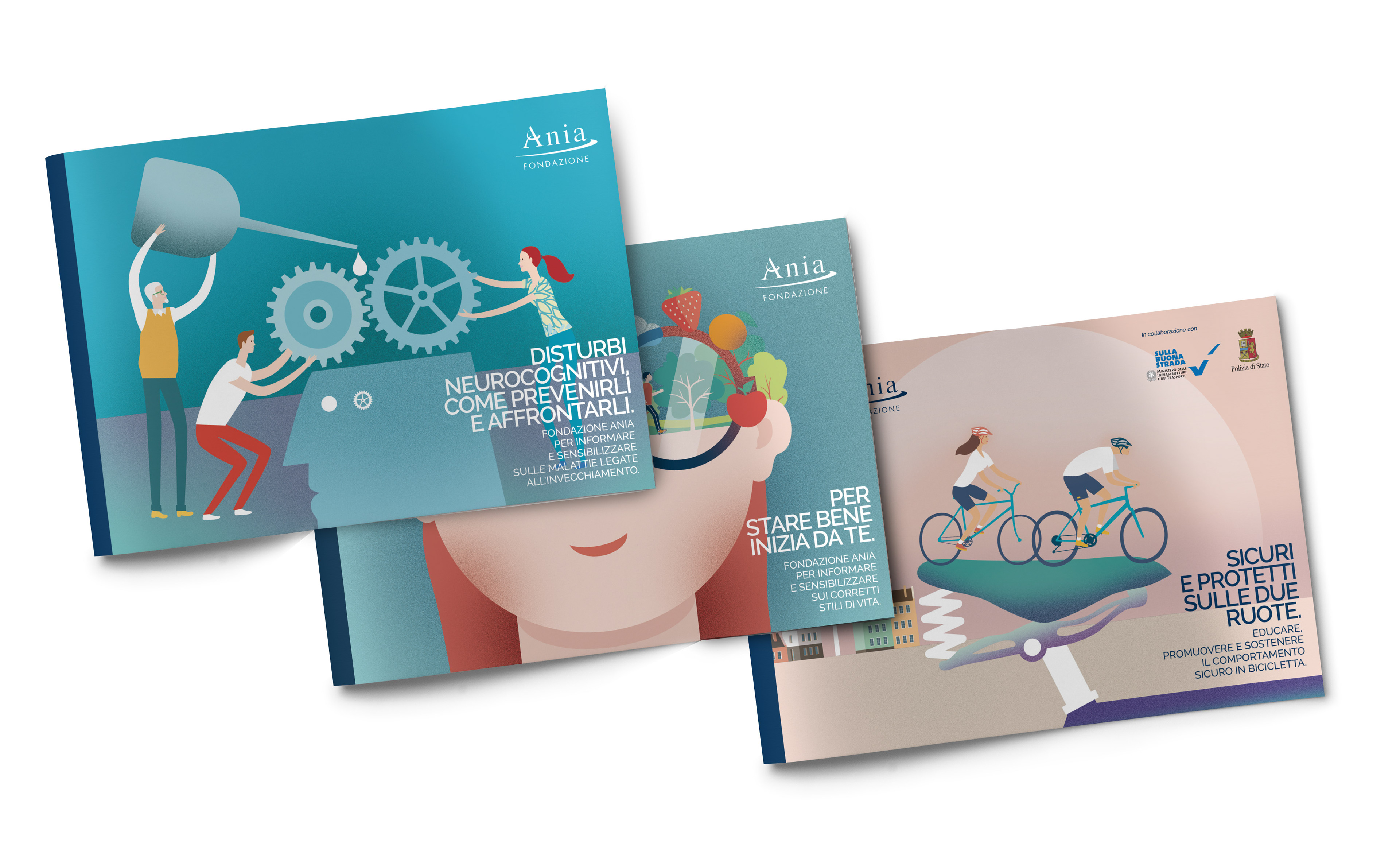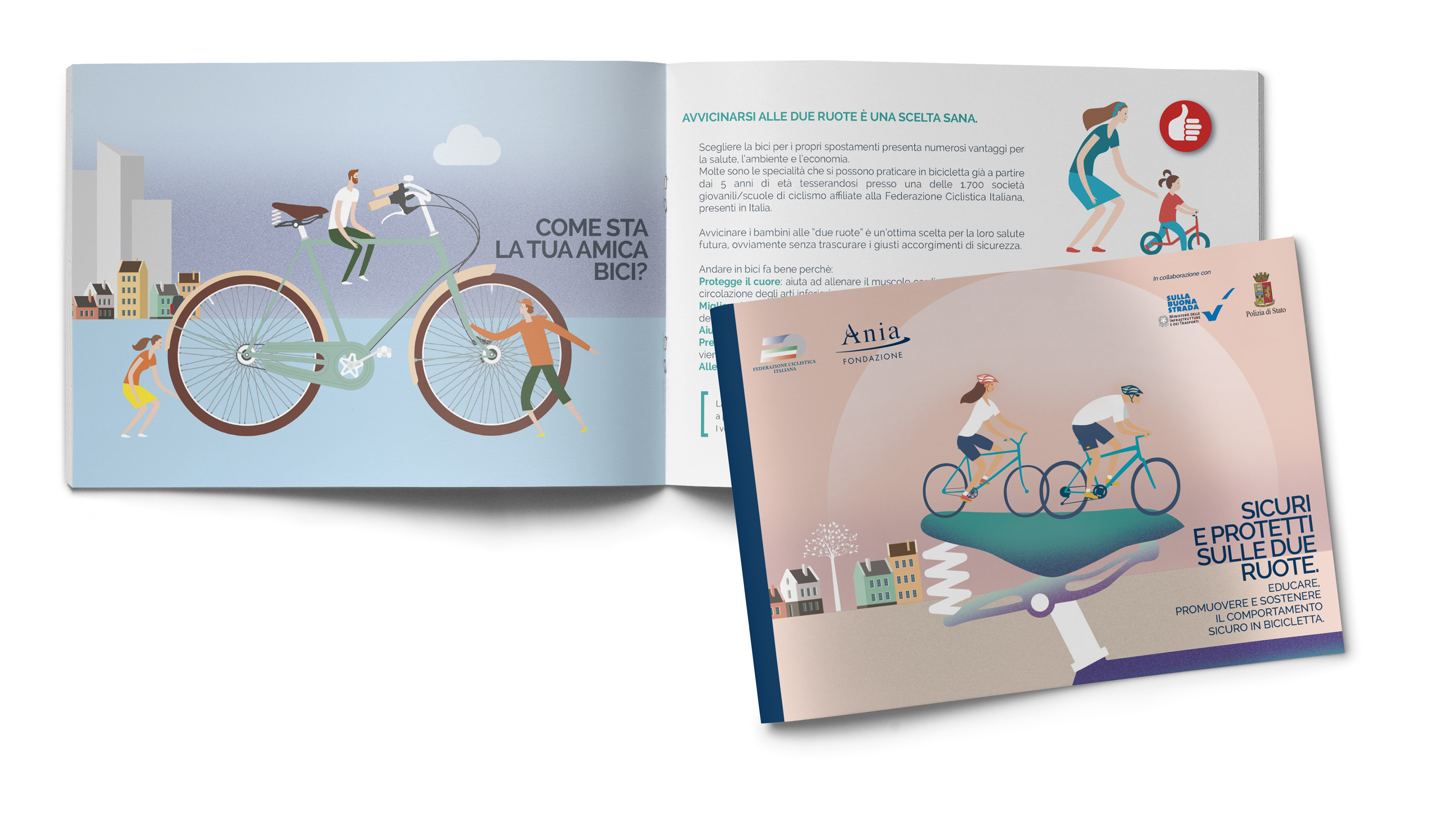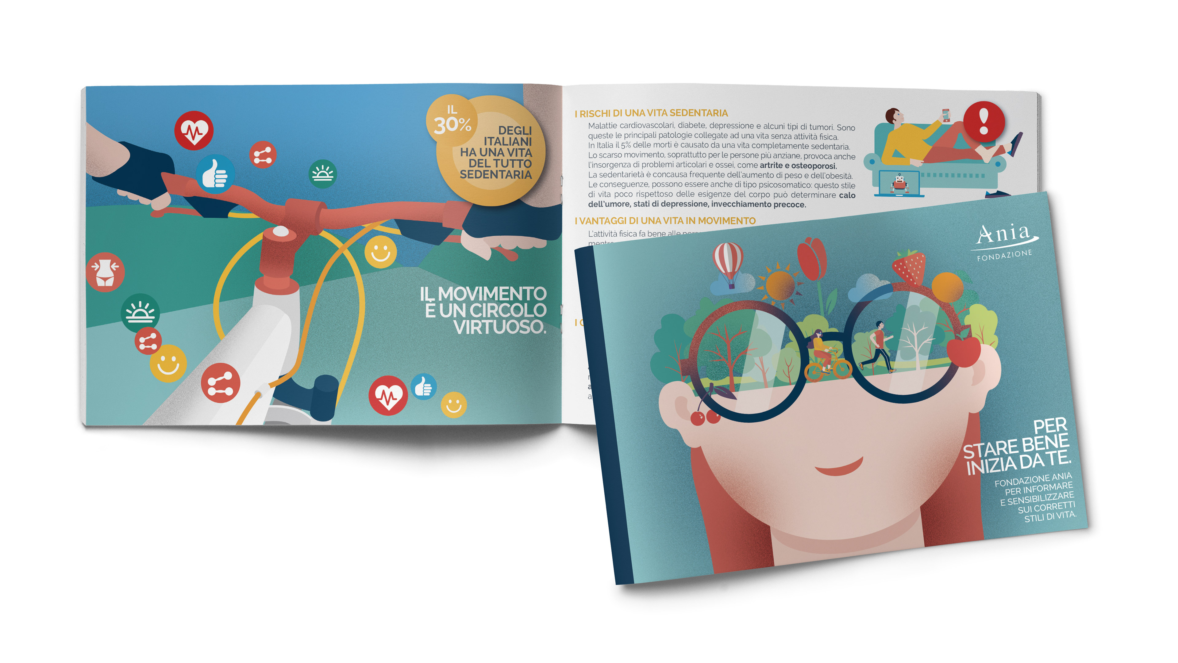 These Fondazione Ania's booklets encourage healthy lifestyles and secure road behaviors.