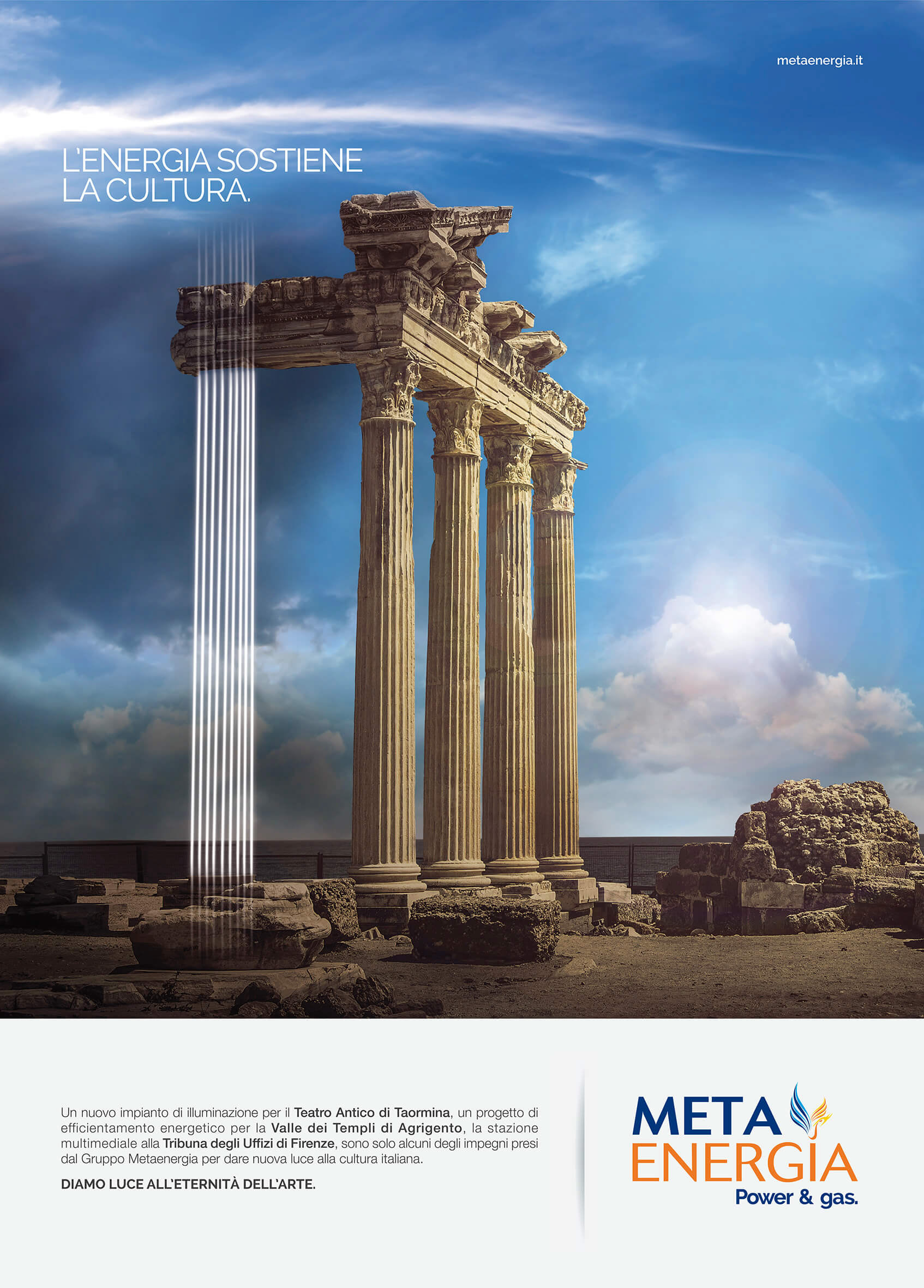The visual concepts of this institutional campaign for print, posters, and web, are centered around Energy Efficiency Plans, Low Impact Energy Production, and Cultural Sponsorship.