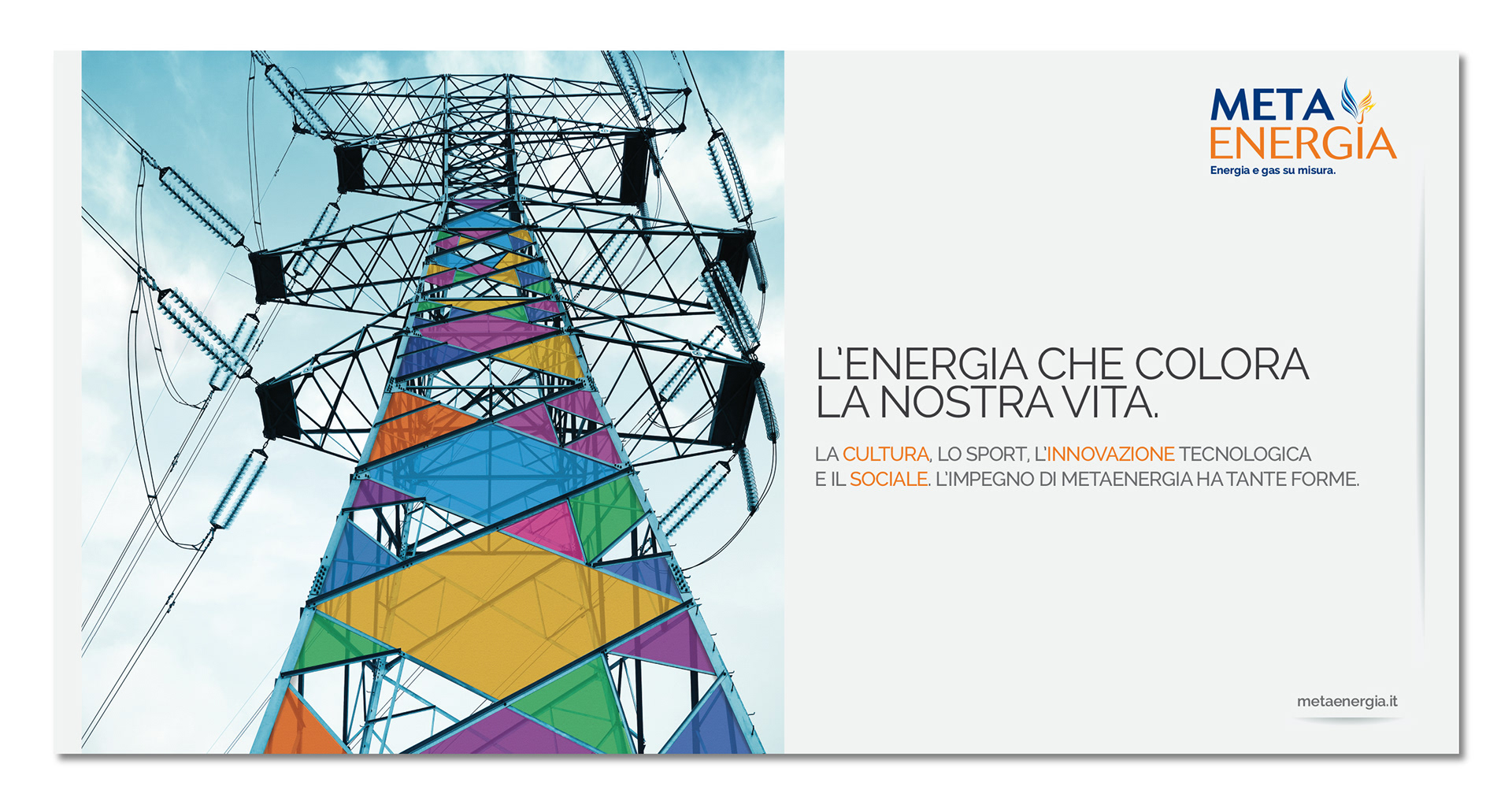 Creative concepts for announcements and large posters advertising. Since 2009, Metaenergia has been operating in the energy market, providing electricity, natural gas, and energy efficiency plans.